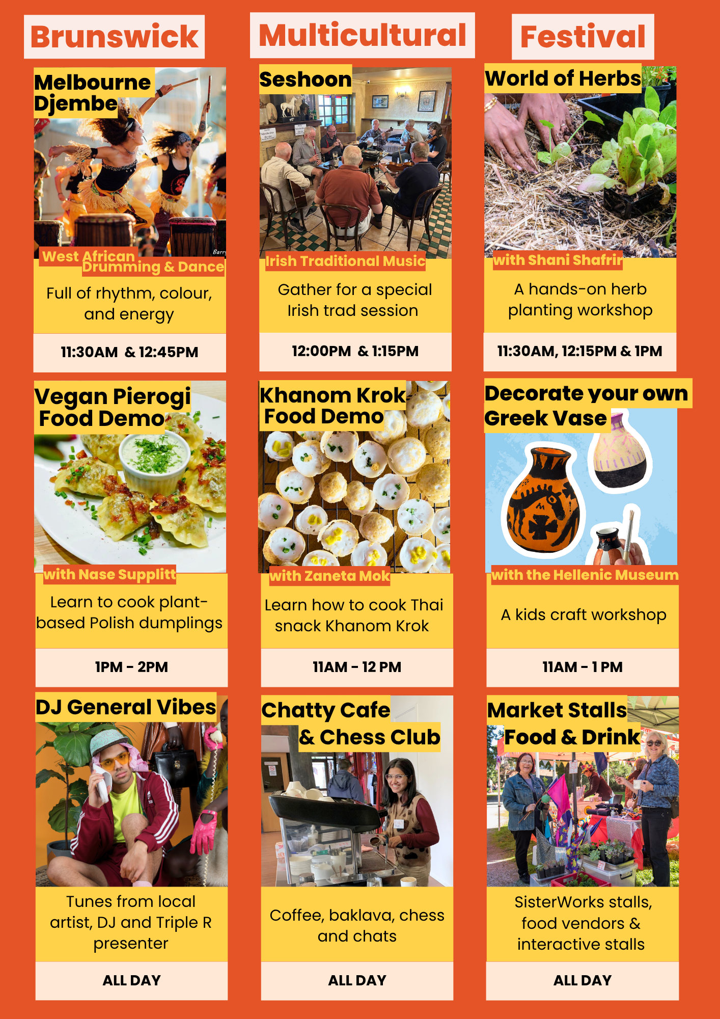 Welcome to the Brunswick Multicultural Festival! It’s a free event hosted by Brunswick Neighbourhood House. It is all about celebrating our diverse community in a fun and family-friendly way.